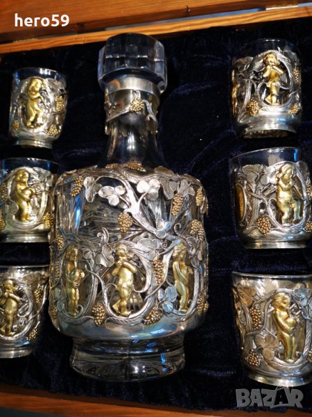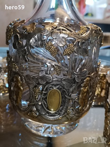 Руски сребърен 84 комплект-сет(сребро,кристал)сребърна кана,чаша,сребро 84 → Обява 32123914
