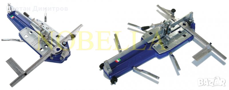 Оборудван с: удължение на линеала; малък ограничител на линеала с измервателна скала; устойчиви на надраскване и противохлъзгащо гумени крака; сгъваеми странични подпори за големи плочки и двойка колела за предвижване.