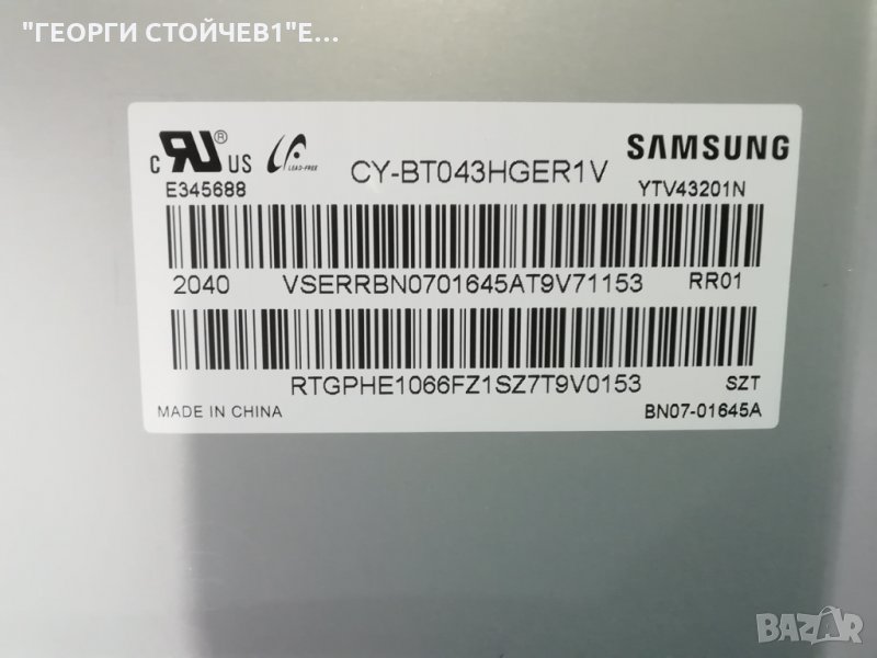 SAMSUNG    UE43TU8072U СЪС СЧУПЕН ДИСПЛЕЙ, снимка 1 - Части и Платки - 32125504 SAMSUNG    UE43TU8072U СЪС СЧУПЕН ДИСПЛЕЙ, снимка 2 - Части и Платки - 32125504 SAMSUNG    UE43TU8072U СЪС СЧУПЕН ДИСПЛЕЙ, снимка 3 - Части и Платки - 32125504 SAMSUNG    UE43TU8072U СЪС СЧУПЕН ДИСПЛЕЙ, снимка 4 - Части и Платки - 32125504 SAMSUNG    UE43TU8072U СЪС СЧУПЕН ДИСПЛЕЙ, снимка 5 - Части и Платки - 32125504 SAMSUNG    UE43TU8072U СЪС СЧУПЕН ДИСПЛЕЙ, снимка 6 - Части и Платки - 32125504 SAMSUNG    UE43TU8072U СЪС СЧУПЕН ДИСПЛЕЙ, снимка 7 - Части и Платки - 32125504 SAMSUNG    UE43TU8072U СЪС СЧУПЕН ДИСПЛЕЙ, снимка 8 - Части и Платки - 32125504 SAMSUNG    UE43TU8072U СЪС СЧУПЕН ДИСПЛЕЙ, снимка 9 - Части и Платки - 32125504 SAMSUNG    UE43TU8072U СЪС СЧУПЕН ДИСПЛЕЙ, снимка 10 - Части и Платки - 32125504 1/10