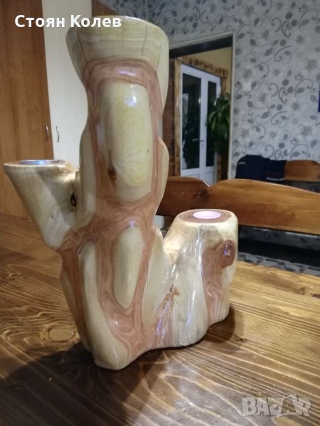 Свещеник от гледичия. Височина 32 см, ширина около 27 см, дебелина около 10 см. Финиш лак с ув защита.