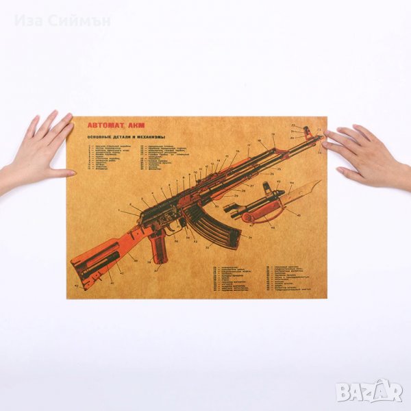 Плакат с устройството на автомат Калашников → Обява 32128023
