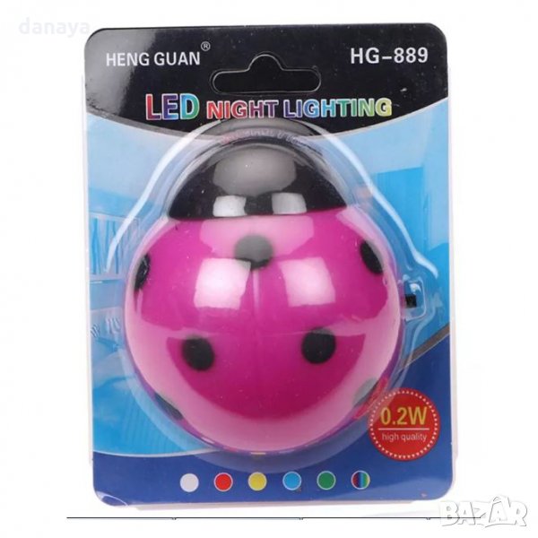 Енергоспестяваща нощна лед лампа за стена с копче за включване и изключване. Лед лампа за контакт с форма на калинка в различни цветове. Симпатична нощна лед лампичка, идеална за всяко детско помещение. Специално разработена, за да пести електроенергия.