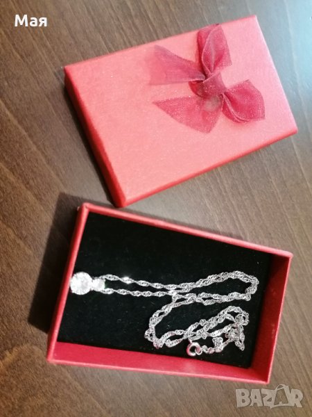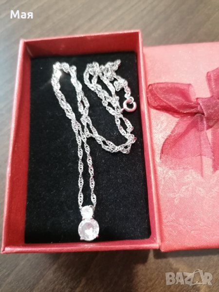 Ново сребърно колие с висулка с два камъка цирконий.