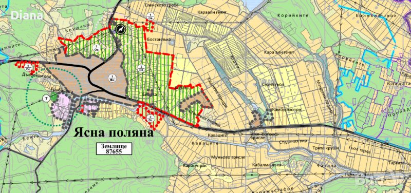 продава заедно или поотделно два съседни имота, всеки с площ 3000 кв.м. (общо 6000кв.м.) в местноста Бостанлъка на село Ясна поляна, на 600м. от къщите и в близост до малък язовир. Имотите са с одобрен ПУП-план за застрояване с показатели: плътност 40%, кота корниз 7,5м. Електрически стълб има на 300 м. от имотите, а вода - на 500м. До тях се стига по 600м. черен път. Цената подлежи на договаряне. Подходящи са за изграждане на фотоволтаична централа или пък конна база, животновъдно стопанство, зеленчукова или овощна градина, ферма за охлюви или за калифорнийски червеи, къщи от затворен тип, вилно селище. Ако земята ви е много може да я разделите с приятели и ще си
