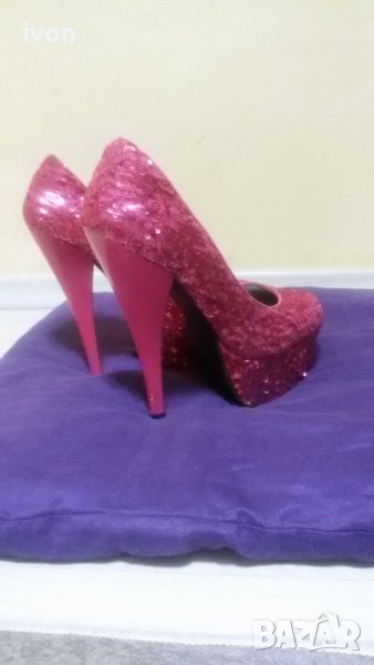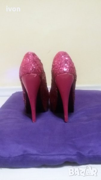 Розови брокатени обувки,обувани са 2 пъти,висо4ина на тока 15 см
