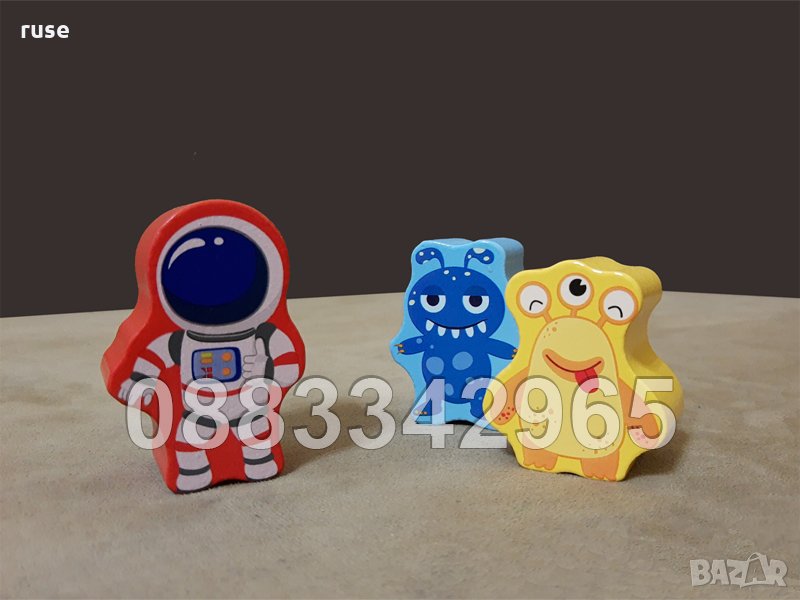 НОВИ! Дървен СОРТЕР совалка - космически кораб / ракета с 6 фигурки
