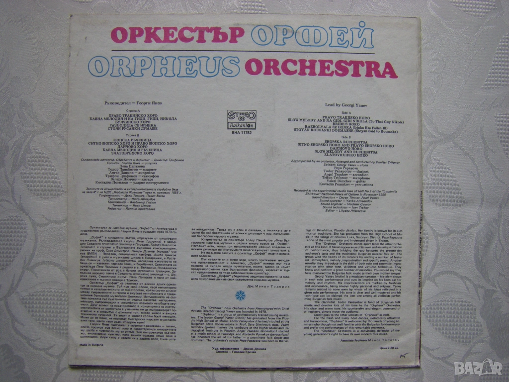 Грамофонна плоча - ВНА 11782 - Оркестър "Орфей", ръководител Георги Янев