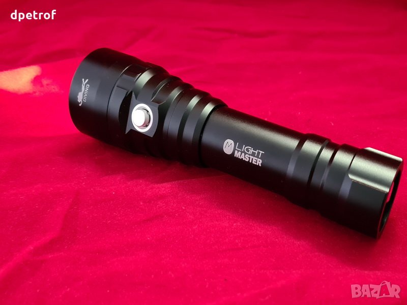 Това е един специализиран прожектор, предназначен за гмуркачи, риболов, подводен риболов, и всичко свързано със изследванията под вода до 100 метра. Самият прожектор е конструиран в този дух, удебелено предно стъкло( двойно антирефлекторно), дублирани уплътнения на всички резби, магнитен превключвател на работните режими, а те са 5, с памет последно използван режим, като се редуват чрез задържане на бутона, рампово. Емитерът е Nichia 219 CD, 3500k цветова температура – това предполагам много по добра пробивност на светлинният сноп във водата, и много по малко дефракции и интерференции от частиците във нея, а максималната мощност е 1200лв.