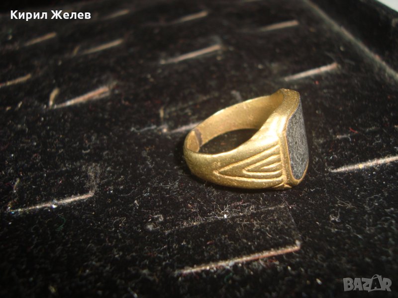 СТАРИНЕН БРОНЗОВ ПРЪСТЕН със СМОЛА РЪЧНА ИЗРАБОТКА ЧЕРЕН КЕХЛИБАР 19629