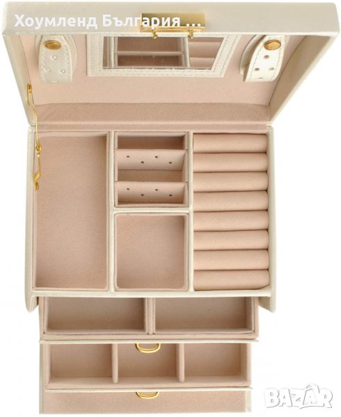 Чудесен подарък за Всяка дама! Стилна кутия за бижута и аксесоари с три нива, две чекмеджета и цели 16 отделения за съхранение на пръстени, огърлици, гривни, обеци и други.