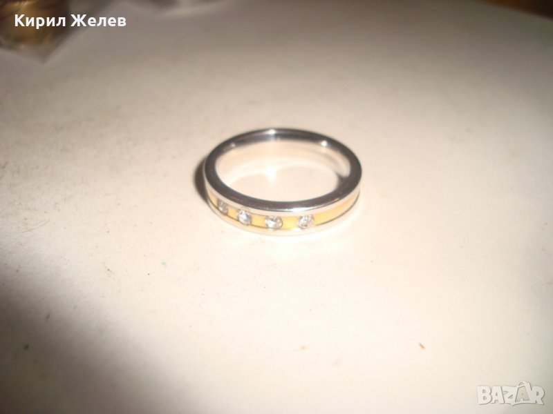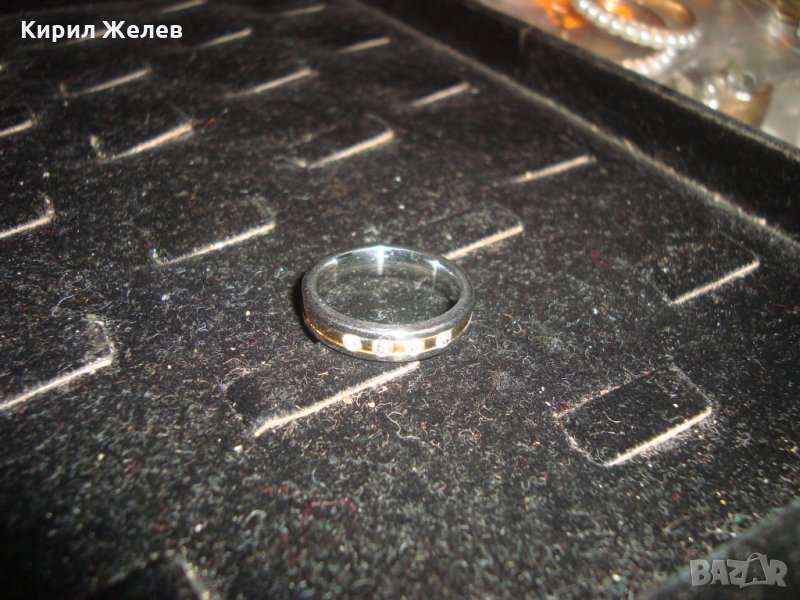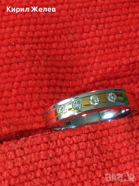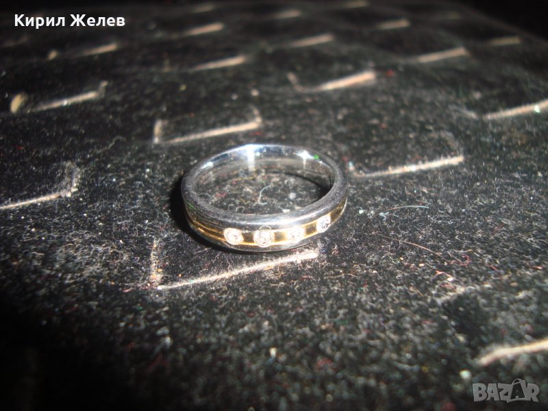 ПОЗЛАТЕН СТОМАНЕН ПРЪСТЕН ХАЛКА с ИНКРУСТИРАНИ ФАСЕТИРАНИ ЦИРКОНИ 20764