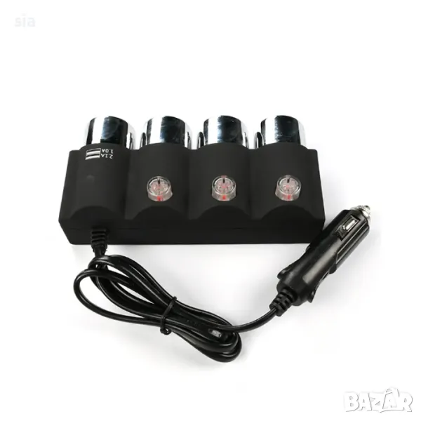 Разклонител за запалка с 3 гнезда и 2 USB порта – удобен аксесоар за едновременно зареждане на до 5 устройства в автомобила. Подходящ за телефони, навигации, камери и други електроуреди. Включване директно в запалката на МПС.