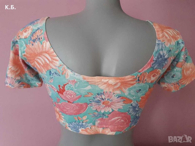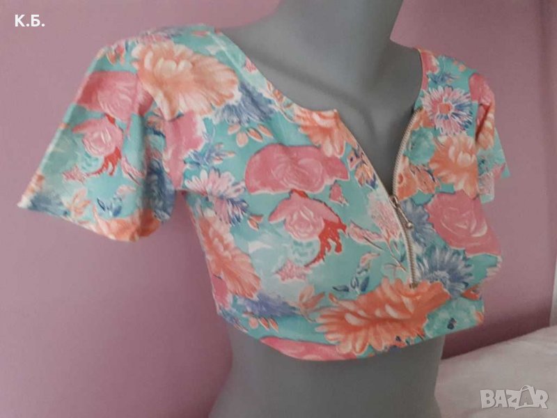 Секси къса блузка. Еластична материя, полу гол гръб, закачливо ципче. Страхотен флорален принт.