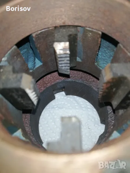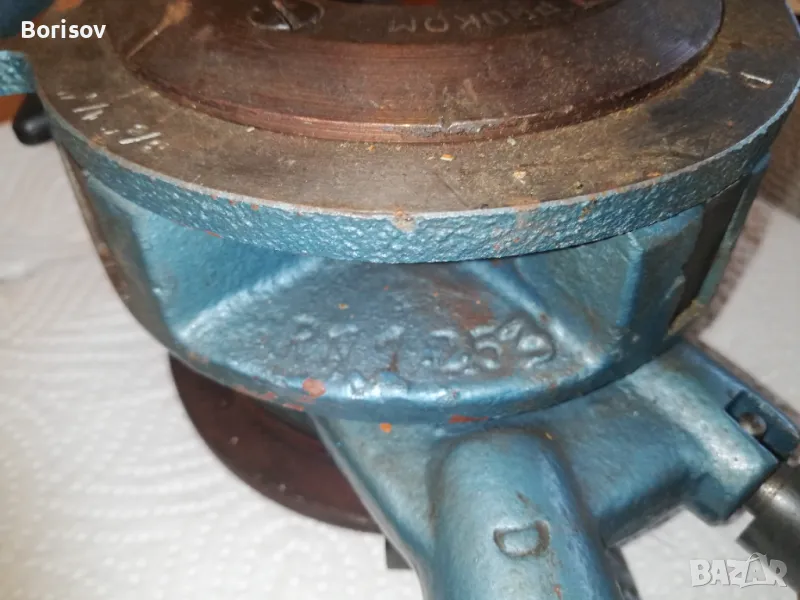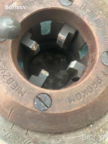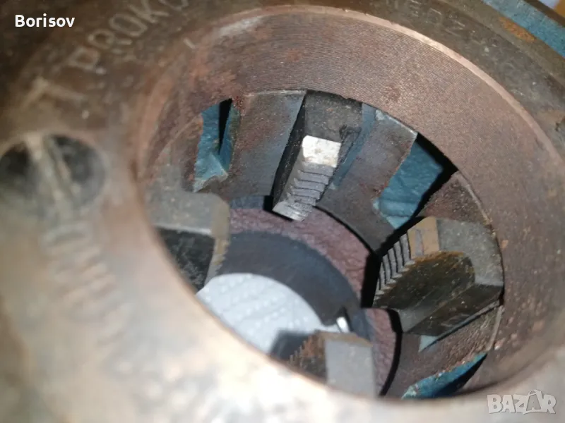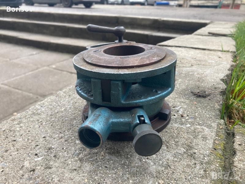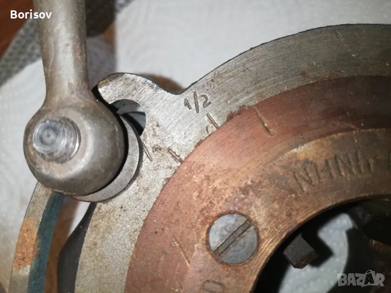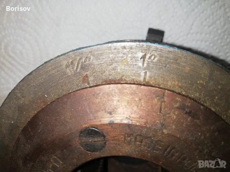 Плашката е с размер за направа на резбонарезна резба на тръби до 2 цола включително, в зависимост от поставен размер ножове. Почти нова, с много запазен външен вид и отлично техническо/работно състояние. Профилактирана, всички механизми по отваряне и затваряне ,челюсти и ножове са в пълна техническа изправност.Височина на главата - 12 см. Плашката е от старото качество инструменти, изцяло от дебело масивно желязо. Задно менгеме за притягане с три челюсти на поставена тръба. Ножове поставени на плашката - 4 бр. размер: 1- 1 1/4 цола. Ножовете са почти нови, без никакви наранявания по закалената стомана на зъбите.