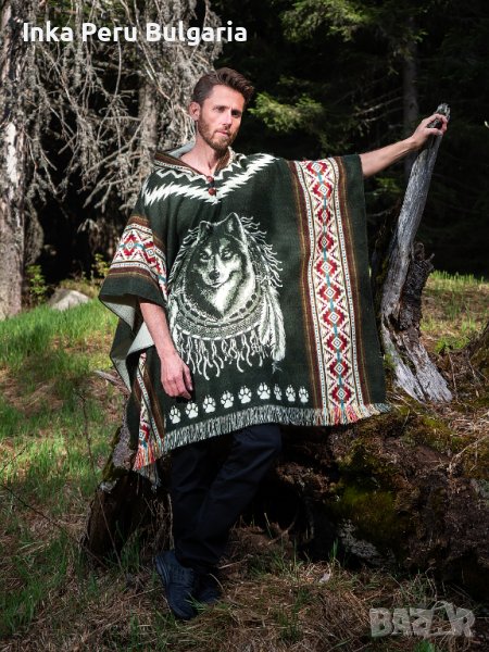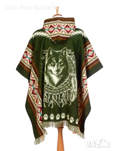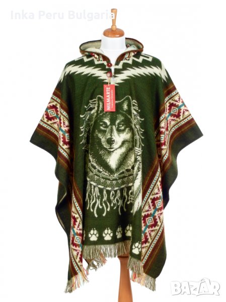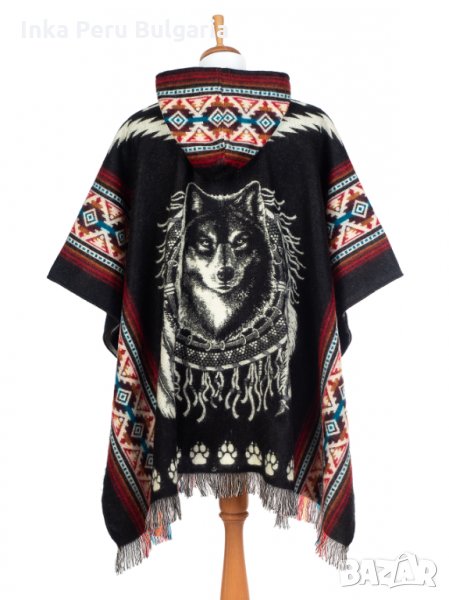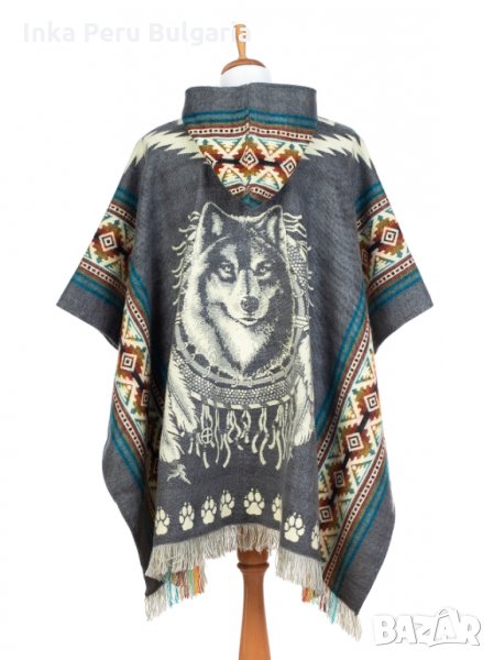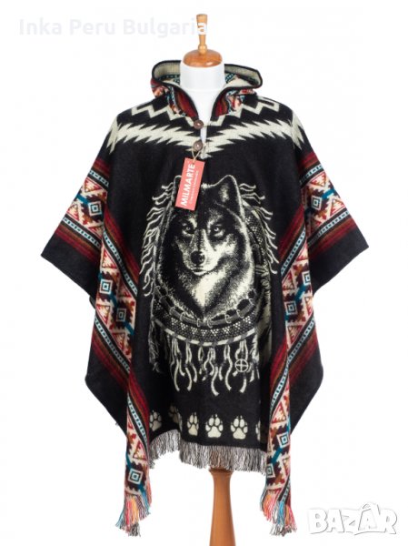 Автентичнo еквадорско унисекс вълнено пончо с вълк, различни цветове