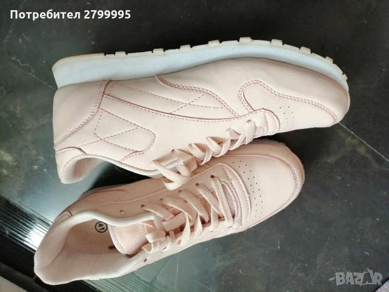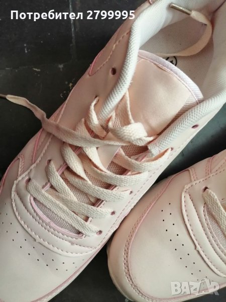 Маратонките са носени веднъж, затова съм отбелязала, че са нови. Дължината на стелката е 27 см. Цветът е бледо розов.