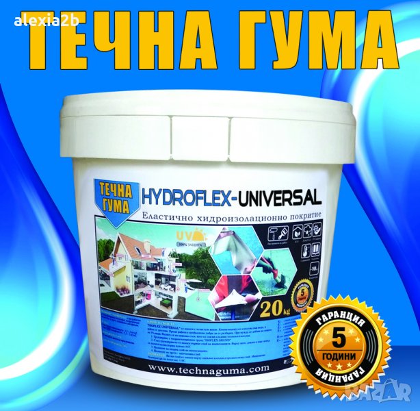 - Течна гума Hydroflex-Universal 20 кг. БЯЛ - 110 €/за около 10-12 кв.м./
