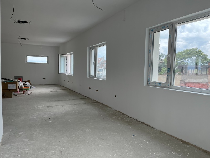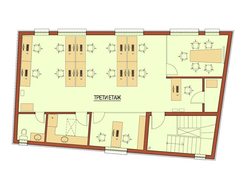 Офис с площ 100 кв метра на трети етаж в бизнес сграда. Помещението е за 12 работни места, тип 'open space'. Обособени са : работна зала, конферентна зала, кабинет на ръководител, сървърно помещение, стая за почивка, санитарно помещение. Офисът е в процес на довършителни дейности след основен ремонт. Монтирана е изолация на тавана - 40 см. каменна вата и 10 см изолация на пода на помещението - 10 см. фибран. Предвиденото отопление е чрез два касетъчни климатика и подово отопление с газов котел. Самостоятелен електромер и водомер за офиса.