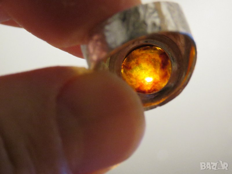 стар голям османски сребърен пръстен с кехлибар.