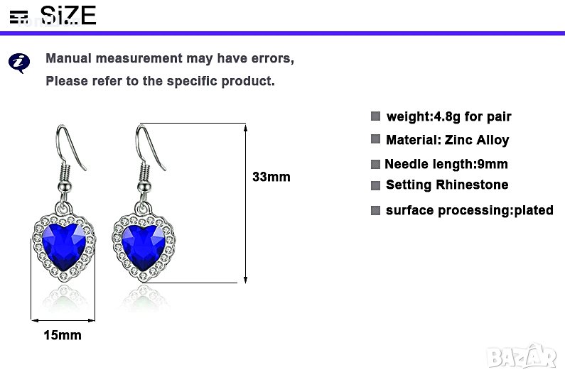 Сърцето на океана изключително изящно, стилно и красиво колие с камъни по цялата верижка ,висулка както и по обеците от Сваровски кристал със син (морски) цвят във формата на сърце. Създадено като “Сърцето на океана” (Le Coeur De La Mer) от филма Титаник. Кристалът пречупва по впечатляващ начин светлината и напомня по романтичен начин за дълбините на морето. Сякаш кристалът е “бездънен”. Това колие е отличен подарък за жена за всеки повод – рожден ден, имен ден и Коледа, и особено подходящ за Свети Валентин или годишнина. Колието е опаковано във велурена торбичка с надпис Титаник !