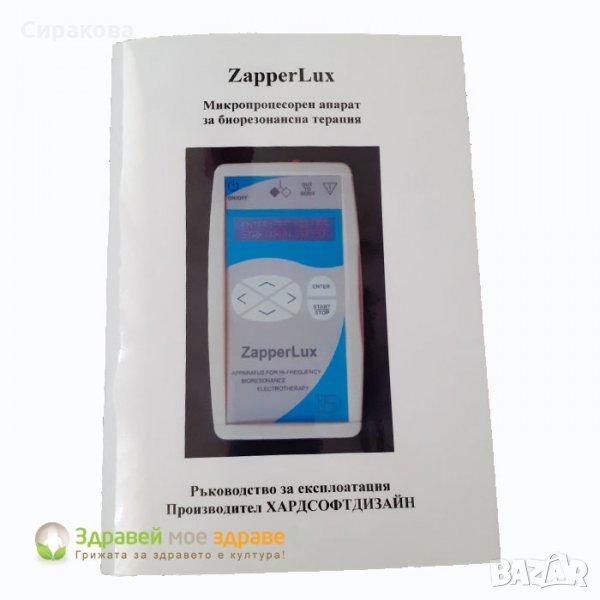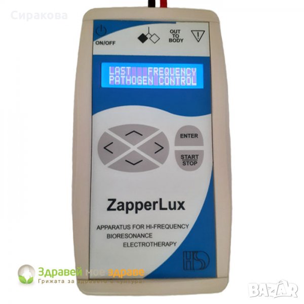 ПредназначениеАпаратът “ZAPPERLUX” е предназначен за провеждане на индивидуална електротерапия с цел прочистване на организма от условно патогенната микрофлора: вируси, бактерии, гъбички, паразити – различни видове червеи, едноклетъчни, тении; причинители на брадавици, кърлежи.