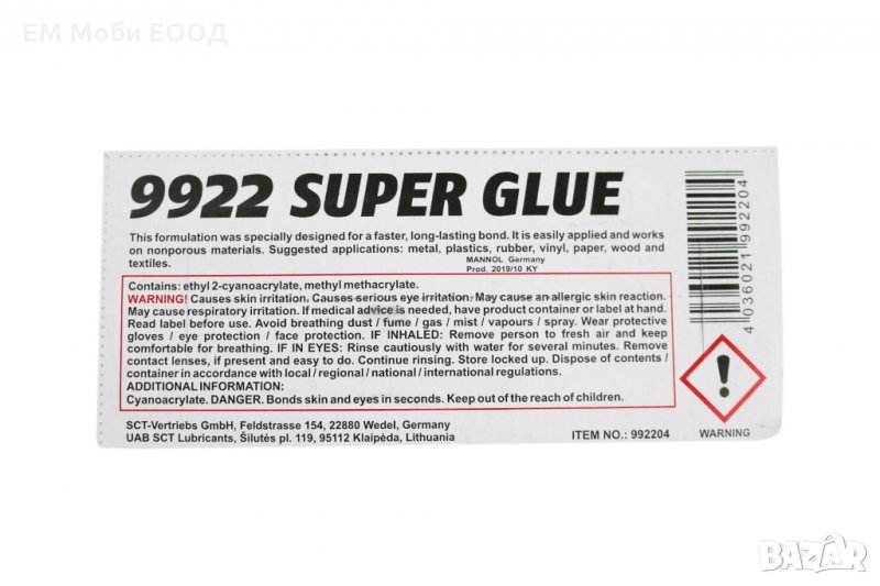 MANNOL 9922 Super Glue е Ултра бързо лепило за здрава, трайна връзка между слепващите се повърхности. Създаден за моментално и трайно залепване на всякакви видове материали.