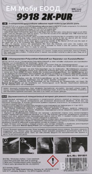 Двукомпонентно Лепило MANNOL 9918 2K-PUR 30гр Метал Дърво Пластмаса