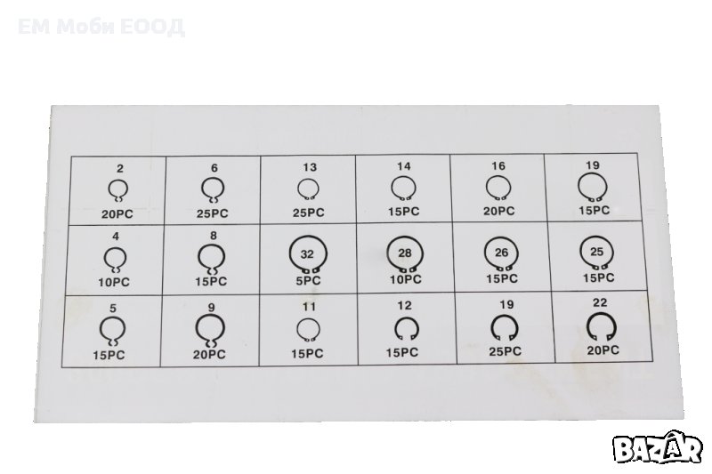 - Комплект от 220бр. зегерки за вал (осигурителна шайба)