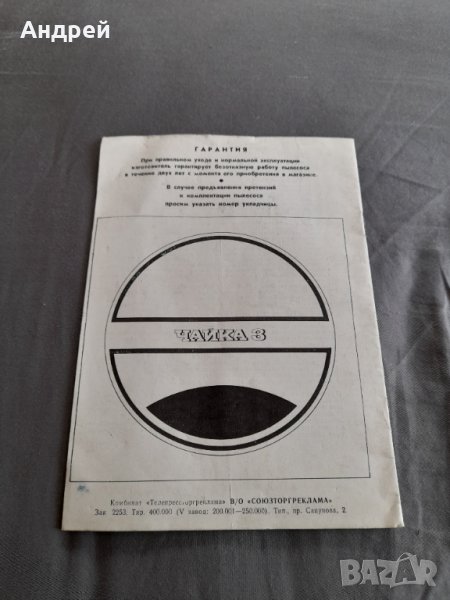 Инструкция за експлоатация прахосмукачка Чайка 3 → Обява 32211387