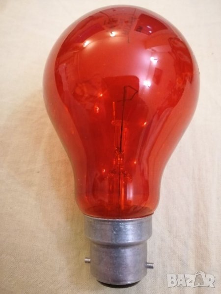 Сигнална пожарна крушка B22, 60 вата, цената е 10 лв за двата броя.