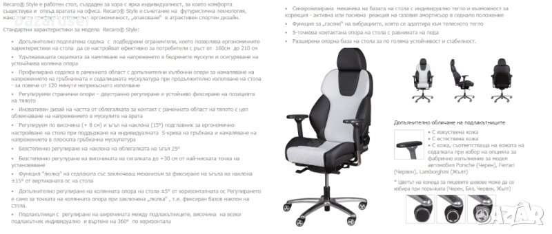Recaro Style стол за офис /24 месеца гаранция/ → Обява 32211971