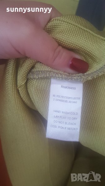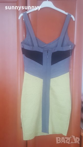 Нова бандажна рокля.Стяга и придава перфектна фигура.долната част цветът на снимките не се вижда хубаво но е жълто зелен красив цвят.