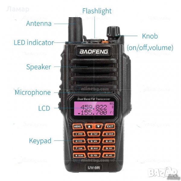 Мощна, двубандова, професионална радиостанция Baofeng UV-5R 8W, UV-6R, UV-9R, CV82