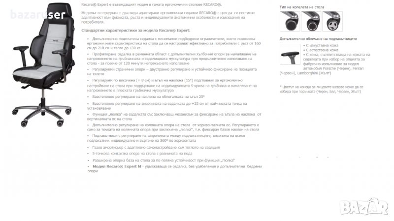 Ергономичен Офис Стол Recaro Expert /24 месеца гаранция/ → Обява 32212785