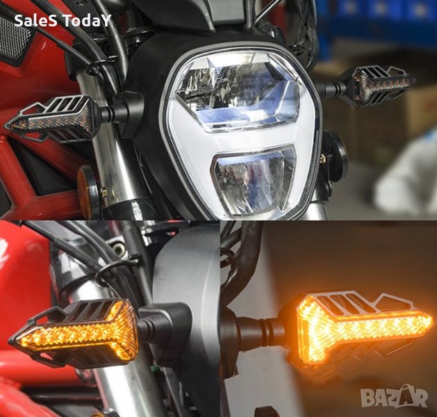 Мигачи светещи в оранжева и бяла светлина. дневна светлина и мигач. Подходящ за мотопеди, мотоциклети, АТВ, скутер или мотор. Работно напрежение 12V. Закрекревне - чрез гайка.