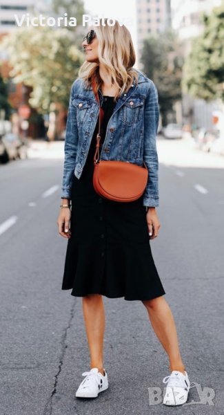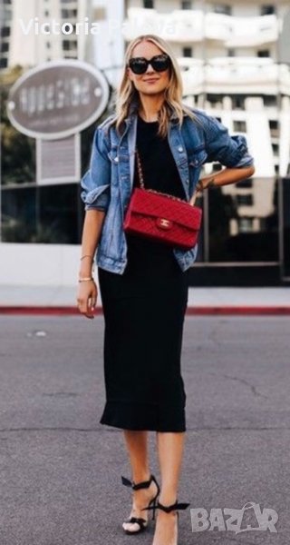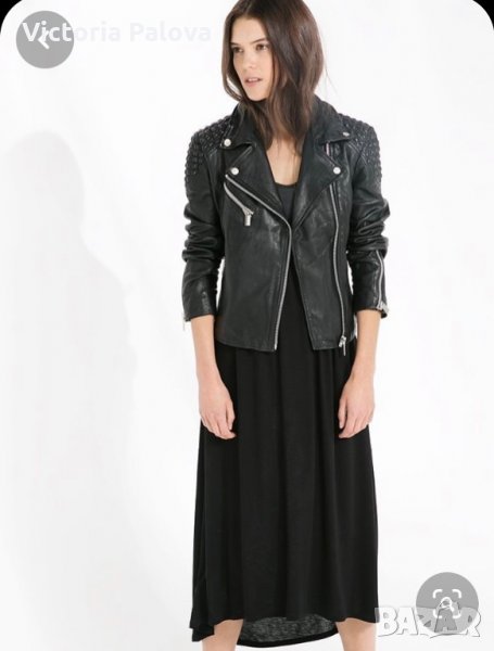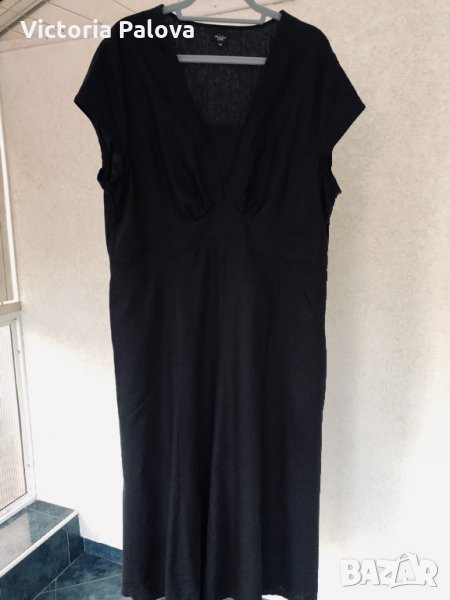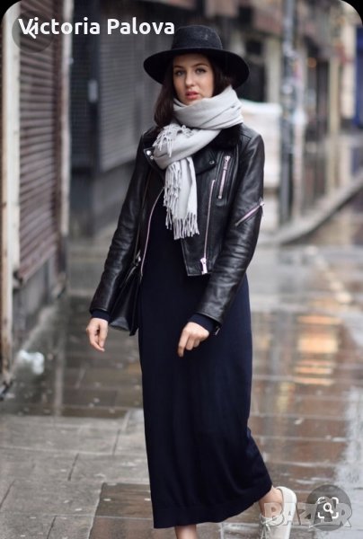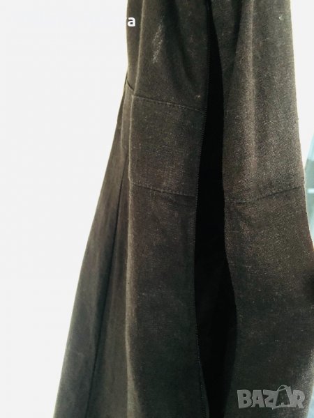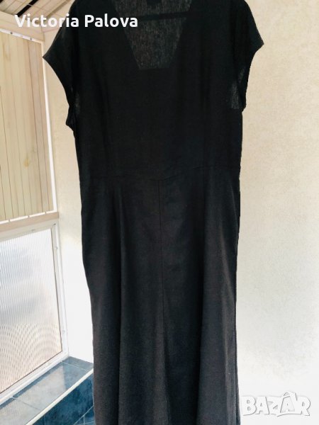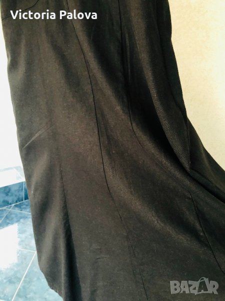 Неизползвана рокля,комплиментарна кройка-полуклош(8 сегмента),стои много красиво и пада тежко.Само в долната част има подплата(като фуста),в горната част има дълъг цип отстрани.рамене-47-48см,ГО-60сми повече(има плоха на гърдите),талия-51-52см,ханш-67-68см,дължина-129-130см.може да се стилизира с дънково или кожено яке-ще бъде красиво и модерно.