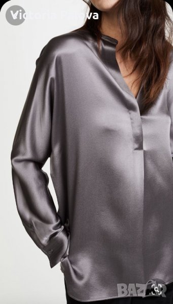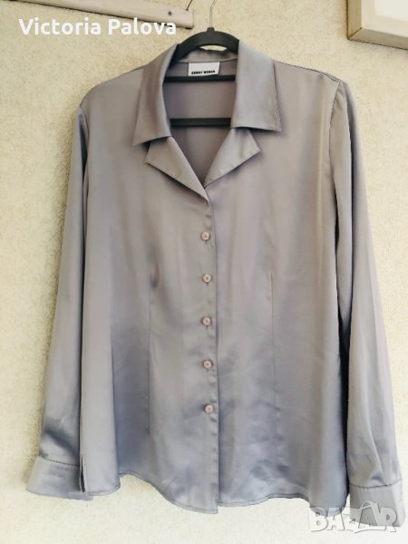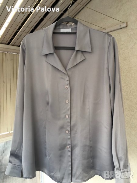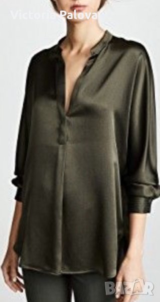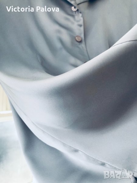 “Студена”материя,изключително красив рядък цвят,красива яка,перлени копчета,блестяща блуза,много добре ще се стилизира с дънки.рамене-43см,ГО-56см,талия-51-52см,цепчици отстрани-6см,ръкав от рамо-62см,от мишница-47см,дължина-68см.