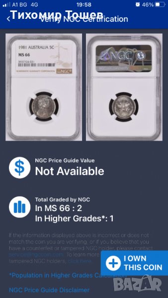 Австралия, 5 цента 1981,NGC MS 66 → Обява 32219497