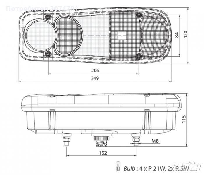 - Монтаж с 2 винта - M8 (център за монтаж 152 мм)