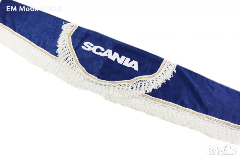 Челно Перде с Бели Пискюли и Златен кант за Предно Стъкло на Камиони Даф Ман Сканиа Ивеко Волво Мерцедес Рено / DAF MAN SCANIA VOLVO IVECO MERCEDES RENAULT