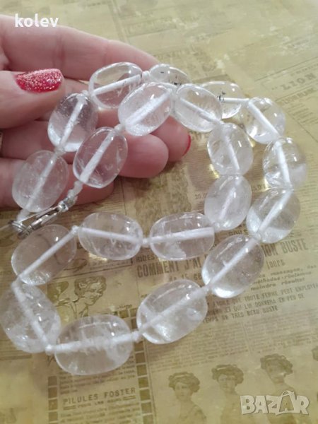 Невероятно красиво и уникално колие от натурален планински кристал. Мънистата са с големина 1.4 / 2 см. Нанизът е текстилен, с възли след всяко мънисто. Закопчалка - ЦАМ. обиколка 50 см