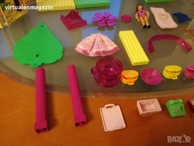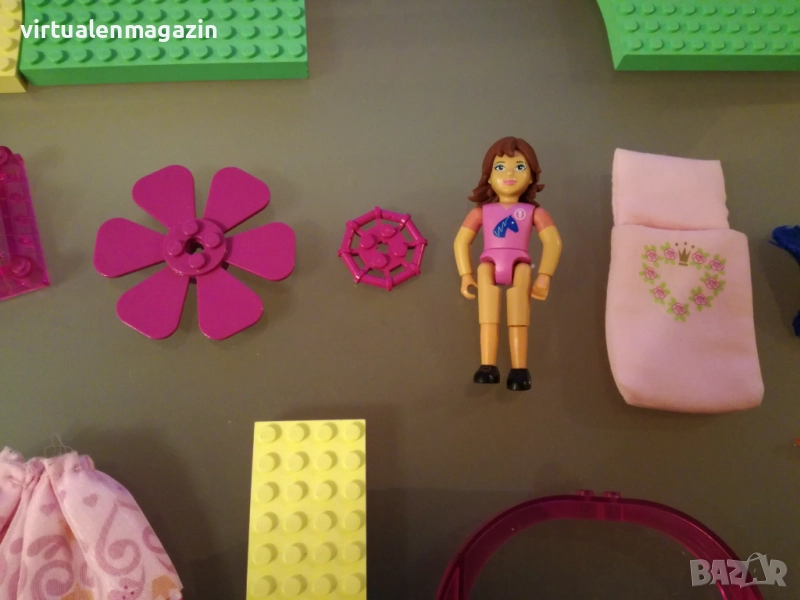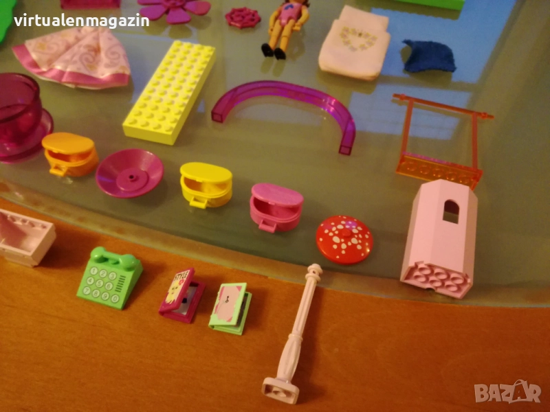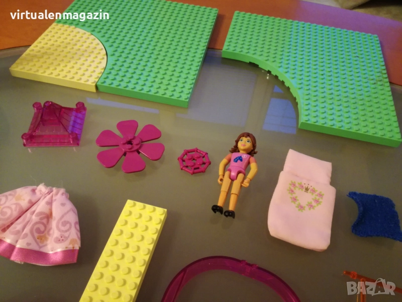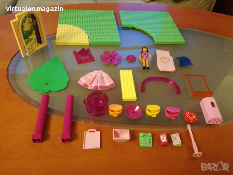 3. Много и различни части - има различни плочи, огромна въртяща се врата с красива декорация, части за замък и други части. Също така Lego Belville фигурка с различни аксесоари - дреха, спален чувал, различни чанти, 2 книги, телефон и др.