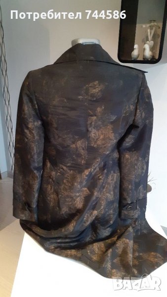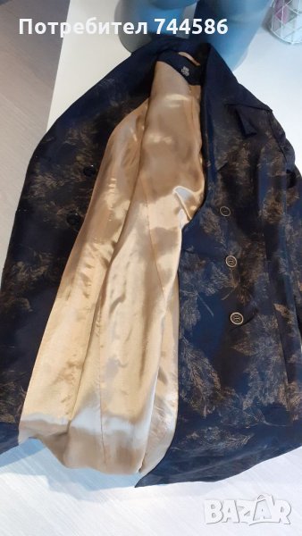 Дамско манто Bobo Zander.Ново ,не е обличано тясно ми е,кройката е вталена.размери:Дължна:100 см,ширина в закопчано състояние 40 см..Дължина на ръкава от ръбчето на рамото 62 см.Материята и кройката е страхотна,не се мачка .,материята е промазана,цвета е като на снимките,верно сус златисто.Мантото е ункално,няма да съжалявате,но е за по слаба жена.Със Спиди доставката е най-евтина около 4 лв.