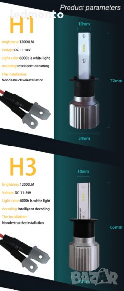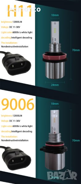 Лед крушки мини, крушки h7, h4, h1, h11, hb3, hb4, диодни крушки за фарове мини размер .