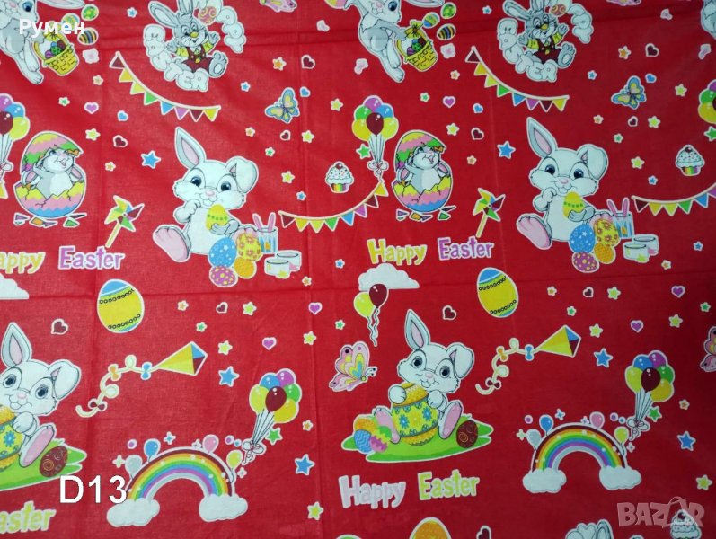 Великденски десени платове 100 % памук за декорация , покривки , спално бельо и други Десени с № D1, D2, D12, D13, D14