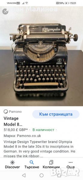 Стара пишеща машина Олимпия мод 8 от 1939 г. , снимка 1 - Антикварни и старинни предмети - 32249572 Стара пишеща машина Олимпия мод 8 от 1939 г. , снимка 2 - Антикварни и старинни предмети - 32249572 Стара пишеща машина Олимпия мод 8 от 1939 г. , снимка 3 - Антикварни и старинни предмети - 32249572 Стара пишеща машина Олимпия мод 8 от 1939 г. , снимка 4 - Антикварни и старинни предмети - 32249572 Стара пишеща машина Олимпия мод 8 от 1939 г. , снимка 5 - Антикварни и старинни предмети - 32249572 Стара пишеща машина Олимпия мод 8 от 1939 г. , снимка 6 - Антикварни и старинни предмети - 32249572 Стара пишеща машина Олимпия мод 8 от 1939 г. , снимка 7 - Антикварни и старинни предмети - 32249572 Стара пишеща машина Олимпия мод 8 от 1939 г. , снимка 8 - Антикварни и старинни предмети - 32249572 Стара пишеща машина Олимпия мод 8 от 1939 г. , снимка 9 - Антикварни и старинни предмети - 32249572 Стара пишеща машина Олимпия мод 8 от 1939 г. , снимка 10 - Антикварни и старинни предмети - 32249572 Стара пишеща машина Олимпия мод 8 от 1939 г. , снимка 11 - Антикварни и старинни предмети - 32249572 1/11