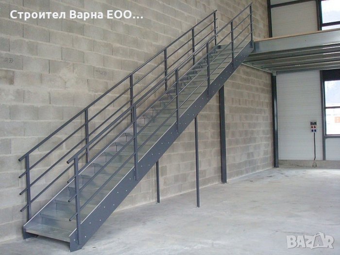 ---Право метално стълбище на две рамена от П-образен профил, с две нива и метална площадка, с парапет за 120 € за всяко стъпало