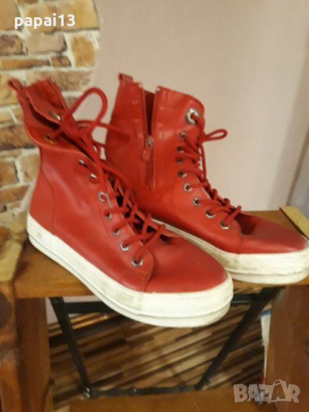 Червени дамски кецови, снимка 1 - Кецове - 32257489  Червени дамски кецови, снимка 2 - Кецове - 32257489 1/2