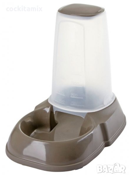 Комбиниран дозатор за храна и вода за вашето куче или котка. Благодарение на прозрачния контейнер винаги знаете наличното количество. В завидимост от положението на контейнера в едното положение е за храна, в другото за вода.