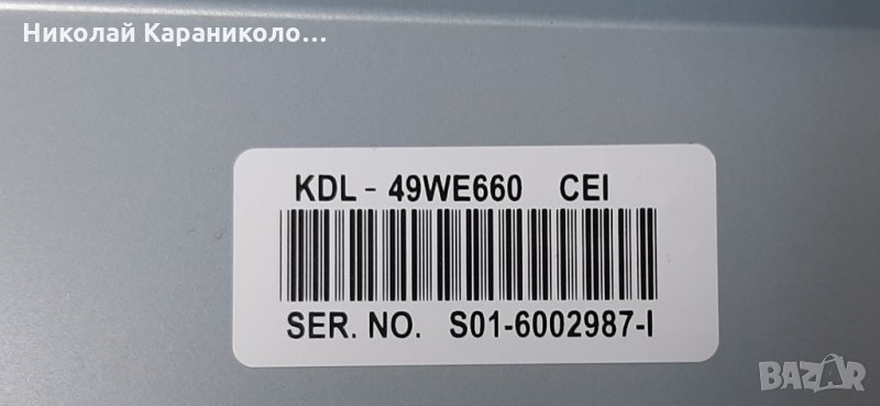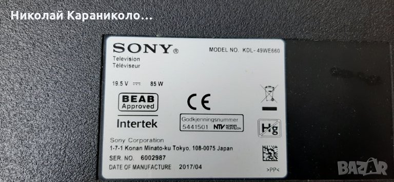 Продавам тв SONY KDL-49WE660 за части по причина-счупена матрица/KDL-49WE660 CEI /.Редовни съответно: